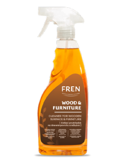 FREN WOOD & FURNITURE je biologicky odbúrateľný prostriedok, ktorý si poradí s každodennou nečistotou, otlačkami prstov, mastnotou, prachom a poskytuje drevenému nábytku, policiam, stolom, pultom a podlahám čistý vzhľad s jemnou vôňou orientálnych drevín. Oživuje a udržiava, nevyžaduje oplachovanie a zasychá úplne bez šmúh.