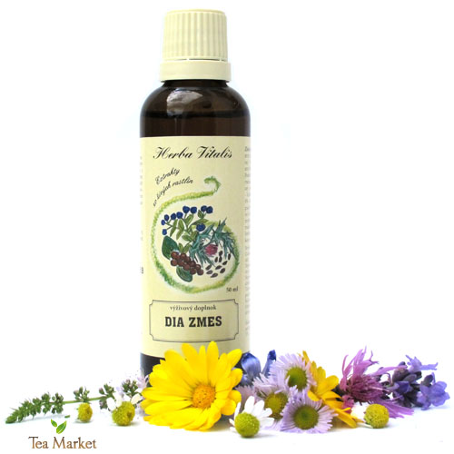 Tinktúra (macerát) z bylín Dia zmes pomáha znižovať hladinu cukru v krvi. Je vhodný podporný prostriedok pri DM (cukrovke), regeneruje podžalúdkovú žľazu.